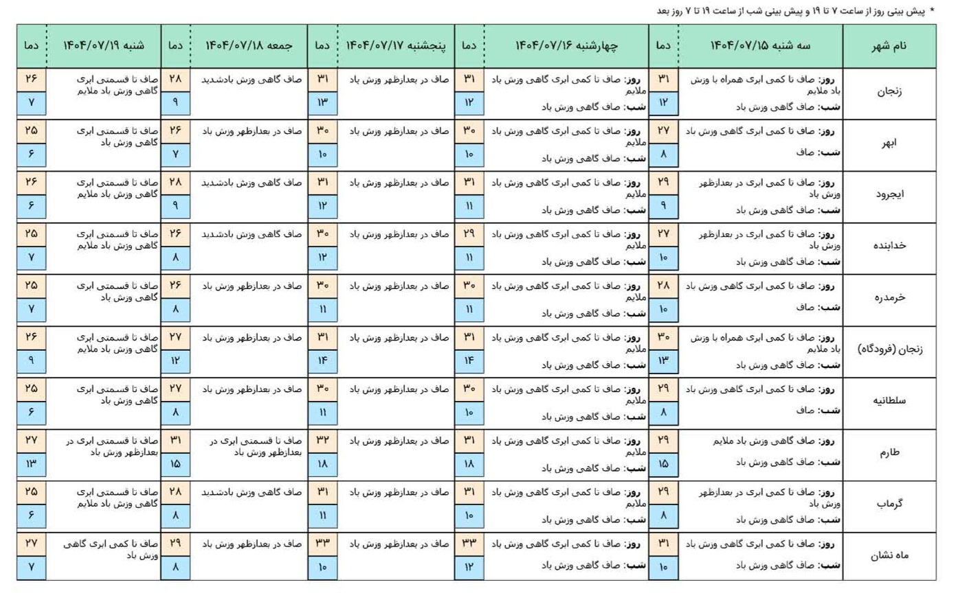 کارشناس پیشبینی هواشناسی زنجان خاطرنشان کرد: از روز جمعه و بهویژه در روزهای جمعه و شنبه، انتظار میرود سرعت وزش باد در سطح استان افزایش پیدا کند و در برخی مناطق به حد نسبتاً شدید نیز برسد.