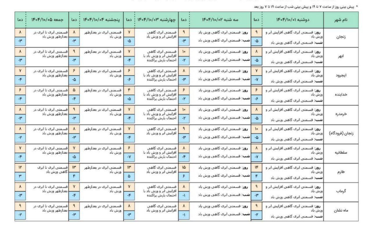قدیمی در پایان از شهروندان خواست با توجه به تداوم سرما و احتمال یخبندان، تمهیدات لازم را بهویژه در ترددهای صبحگاهی و فعالیتهای کشاورزی در نظر بگیرند.