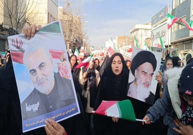 مردم همیشه درصحنه شهرستان خرمرده امروز جلوه های باشکوه از وحدت و انسجام برای اقتدار ایران اسلامی را به نمایش گذاشتند و در محکومیت اقدامات تروریستهای آمریکایی صهیونیستی راهپیمایی کردند.