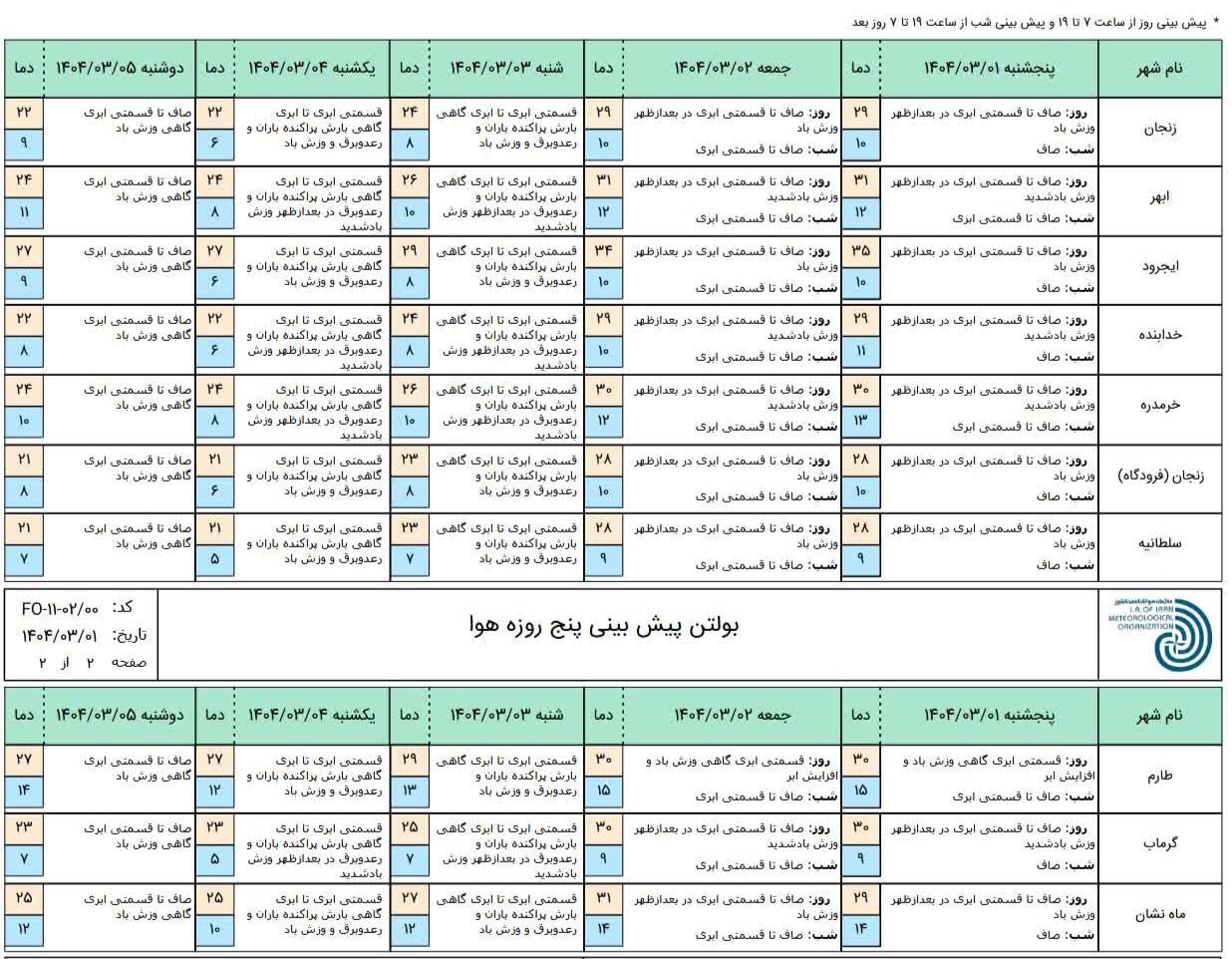 کارشناس پیشبینی هواشناسی زنجان خاطرنشان کرد: بر اساس تحلیل نقشههای هواشناسی، شدت بارشها امروز بیشتر خواهد بود و پیشبینی میشود که در برخی نقاط بهصورت رگبار شدید همراه با تگرگ ظاهر شود. این شرایط جوی ممکن است باعث اختلال در ترددهای جادهای، آبگرفتگی معابر و وارد آمدن خسارات جزئی به محصولات کشاورزی در برخی نواحی شود.
