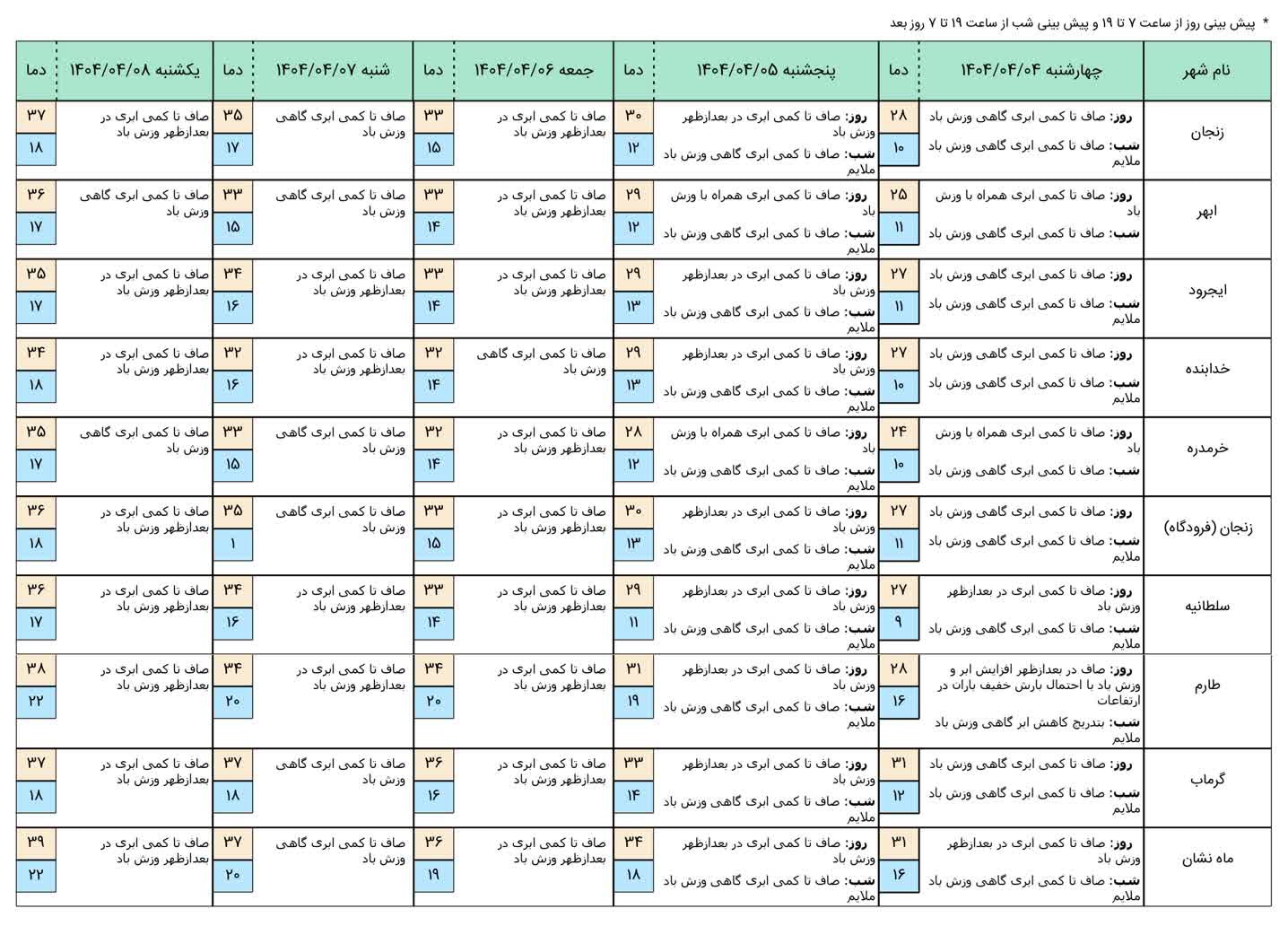 کارشناس پیش‌بینی اداره‌کل هواشناسی استان زنجان از افزایش تدریجی دما در سطح استان خبر داد و گفت: آسمانی صاف و افزایش نسبی دما در روزهای آینده برای استان زنجان پیش‌بینی شده است.