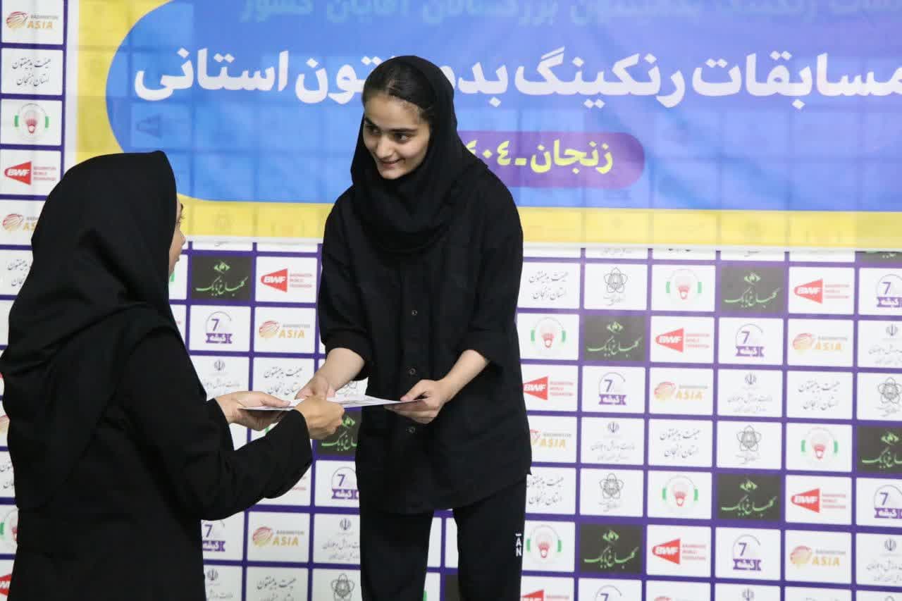 رئیس هیأت بدمینتون استان زنجان افزود: در بخش رقابتهای دختران زیر ۱۵ سال نیز به ترتیب الهه رسولی مقام اول، پرینا باقری مقام دوم و نسلوا نیکخواه و سارینا حسنخانی به طور مشترک مقام سوم را کسب کردند.