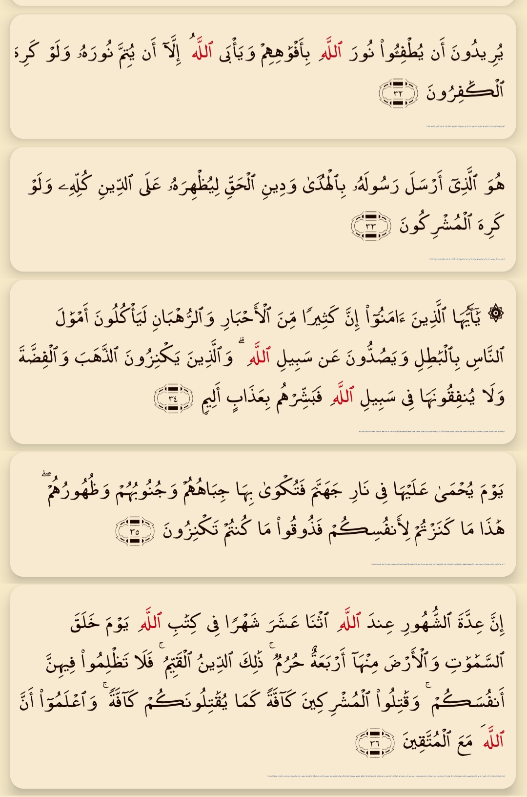 سوره توبه آیات۳۲ تا ۳۶