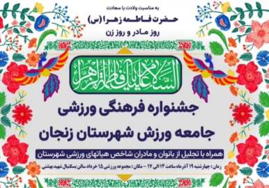 رئیس هیأت انجمنهای ورزشی استان زنجان گفت: جامعه ورزشی شهرستان زنجان، به مناسبت فرخنده ولادت حضرت فاطمه زهرا (س)، روز زن و روز مادر، اقدام به برگزاری یک جشنواره بزرگ فرهنگی - ورزشی خواهد کرد.